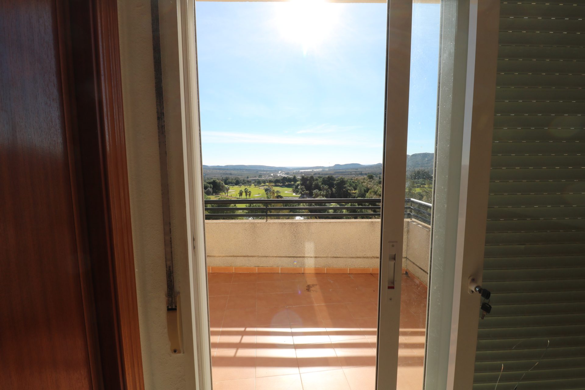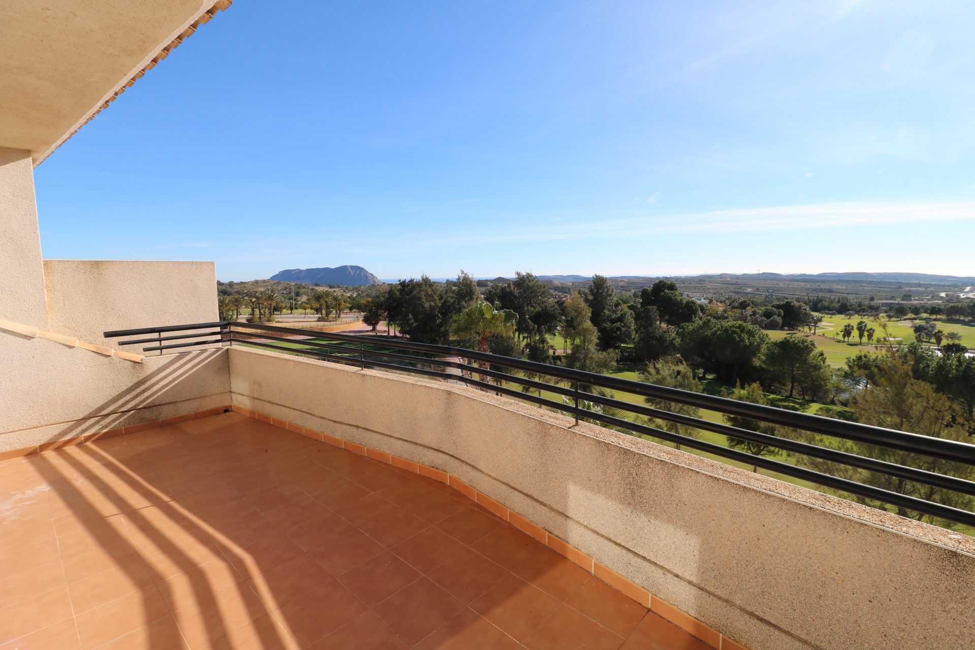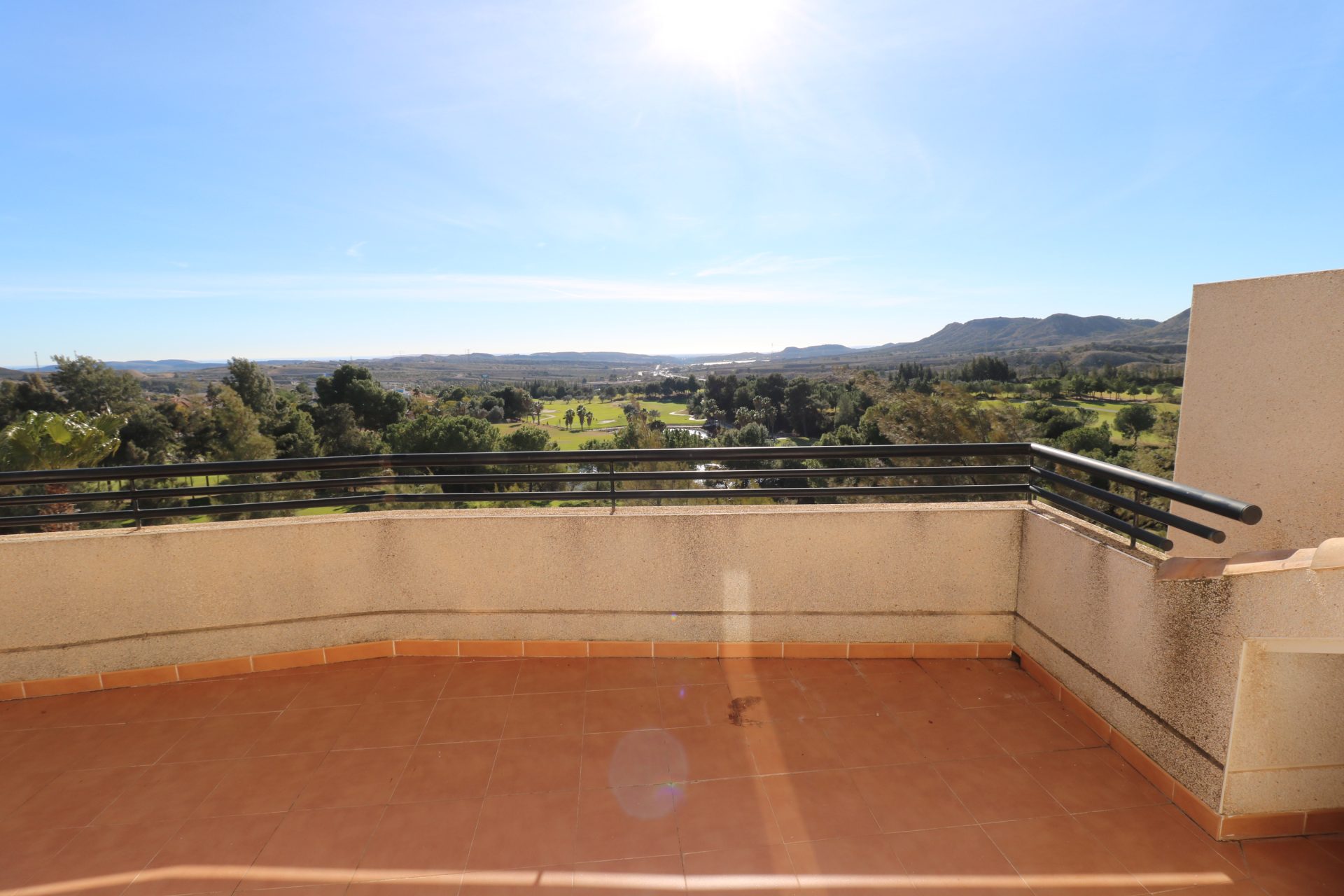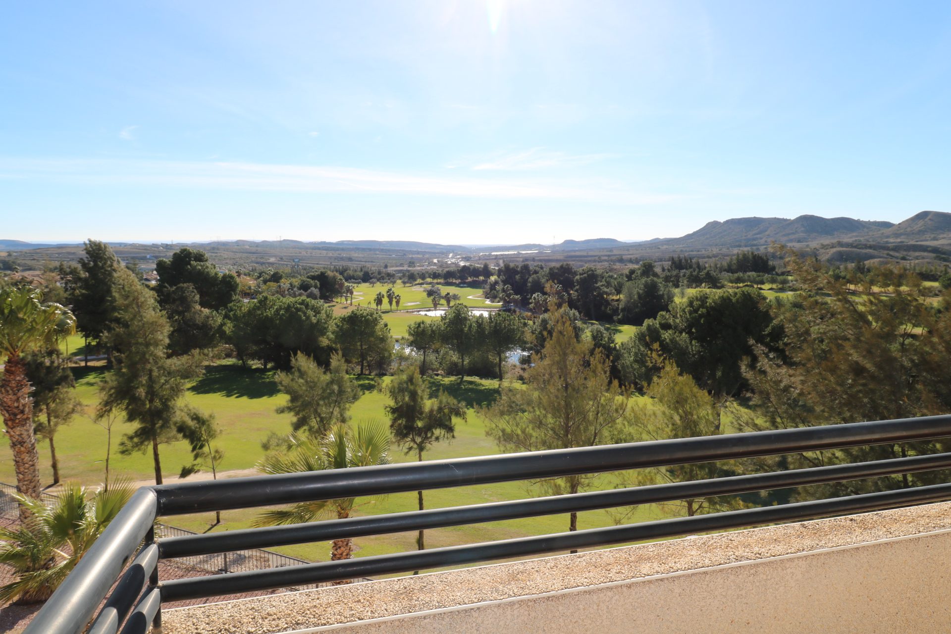 Bright 2-bed apartment: family bathroom plus a master double with fitted wardrobes, en-suite and direct balcony access. Sunny all day with gorgeous sunsets. Wide views over holes 10–12, the gardens, pool and dramatic scenery—plus a glimpse of the coast from the very large balcony.